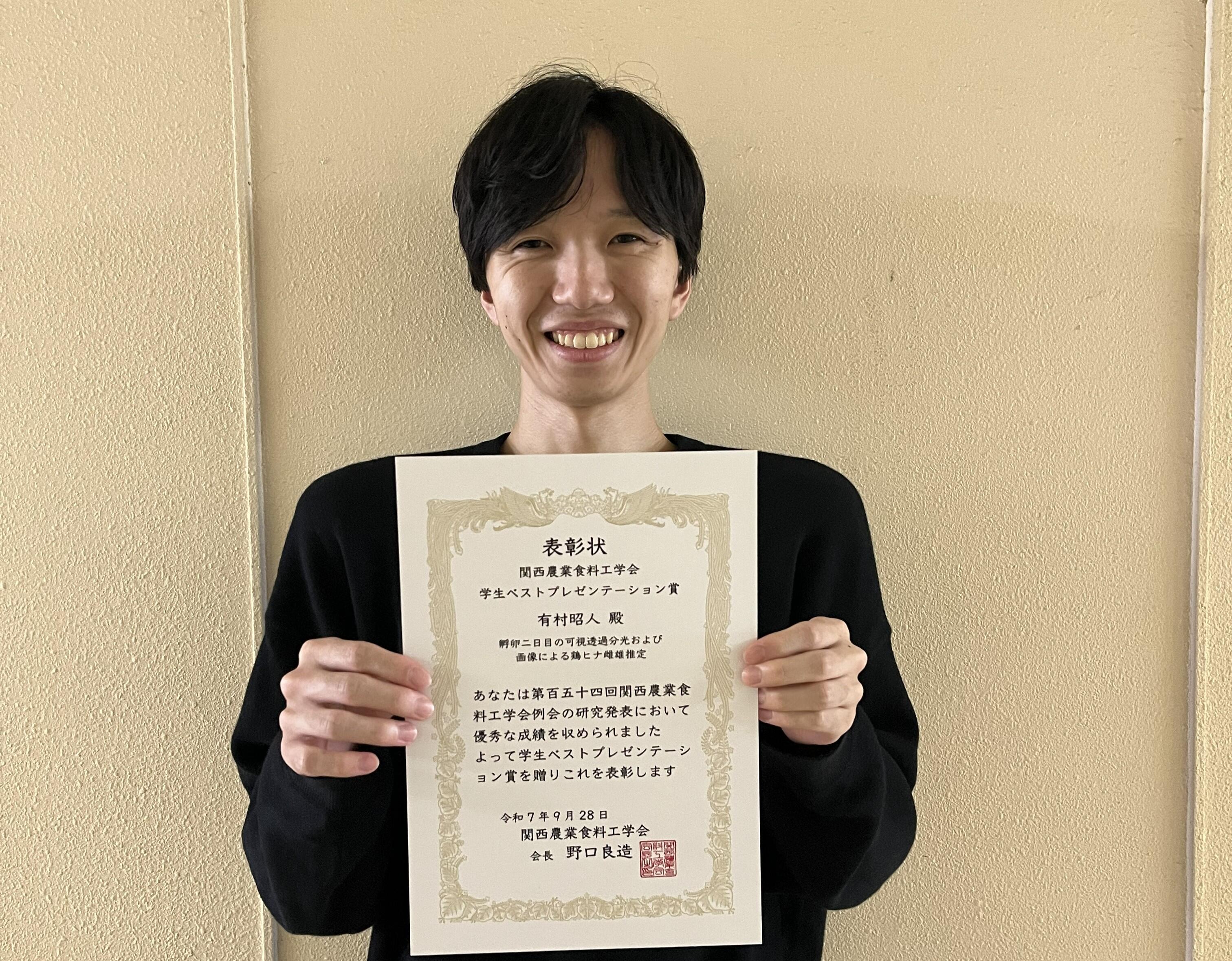関西農業食料工学会にて有村昭人さんが学生ベストプレゼンテーション賞を受賞!