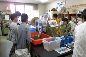 生物資源学部の教育・研究は、地元地域や海外の研究機関・大学と連携して行っています。このブースでは、国際的・地域的につながっている(LINE)活動を紹介します。国際交流部門では、インドネシア・スリウィジャヤ大学およびパジャジャラン大学とのダブルディグリー制度等について、留学生が英語と日本語で紹介します。USR(University Social Responsibility)部門では、環境先進大学における「生物資源学部の環境への取り組み」、男女が対等の立場で互を尊重しながら教育・研究を行う「男女共同参画」への取り組み、高等学校と連携して授業を進める高大連携事業など「教育の普及」への取り組みを紹介します。 - 研究室自由見学・・・原則すべての研究室を開放します