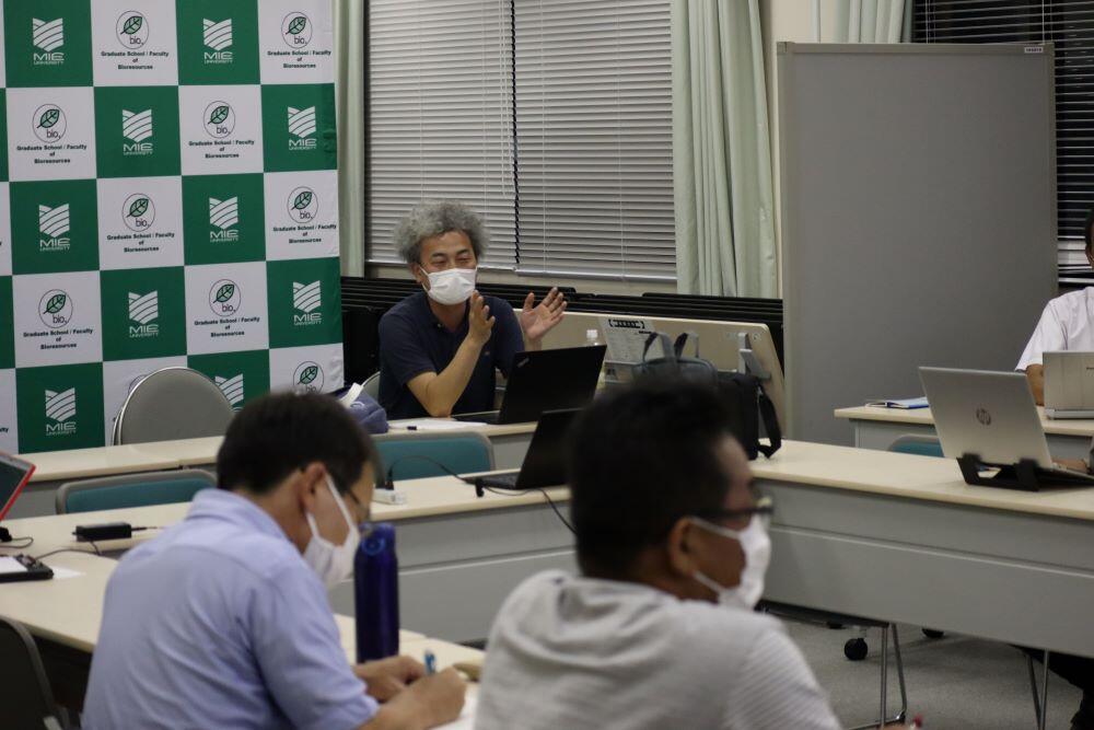 三重県内で活躍する稲作関係者が最新の研究情報を共有する Rice Field Seminar が3年ぶりに復活しました。 復活後の初回は、8月4日(木)生物資源学部BISS室を拠点にハイブリッド方式で開催され、産官学の各方面から総勢22名が参加しました。