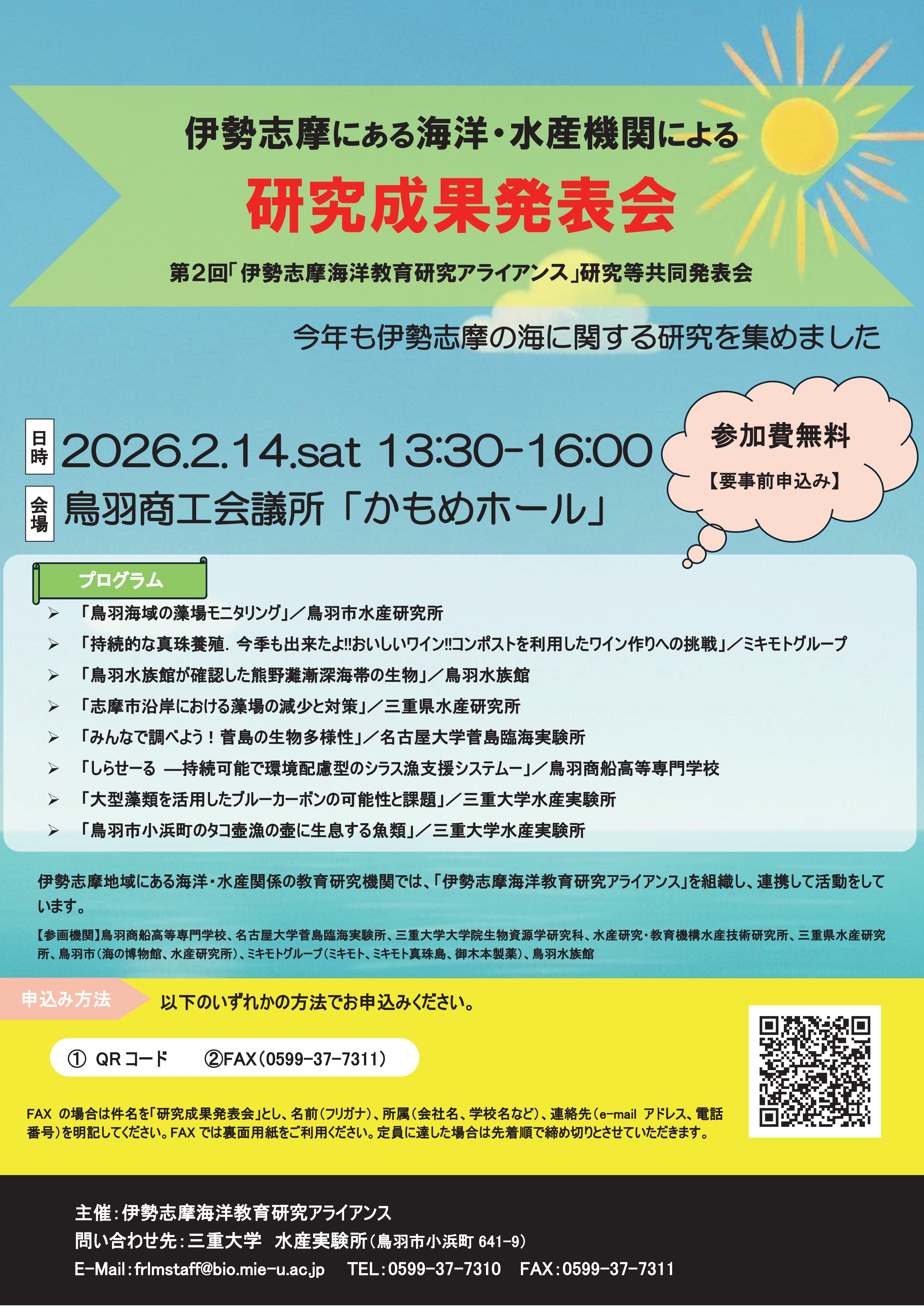 伊勢志摩にある海洋・水産機関による研究成果発表会を開催します。
