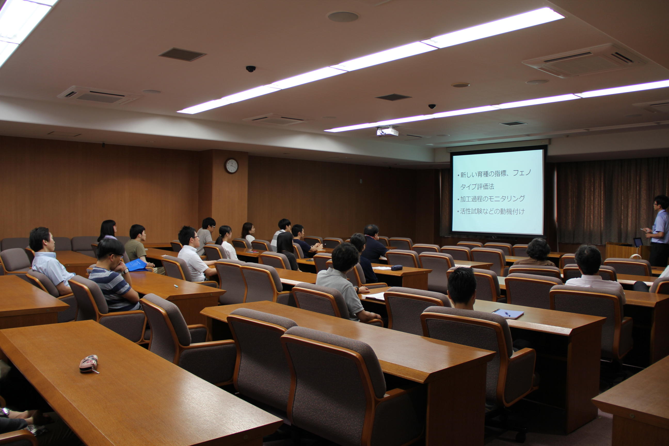 「脂質を中心とした網羅的代謝分析とその植物科学への応用について」とのタイトルで講演が行われ,参加者は熱心に聞き入っていました。