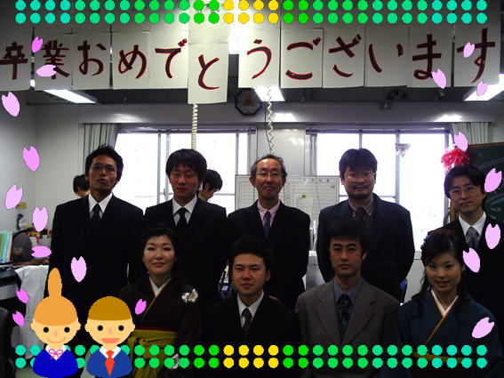 | 奥田 章子、村田政穂、吉橋 秀典(以上、修士修了) 木本真衣、熊井 乃理子、斎 朋子、内藤俊介、古本 孝文、矢野 直人(以上、学部卒) |