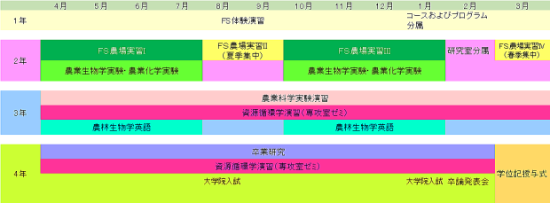 農業生物学プログラム 学年進行に伴うスケジュール